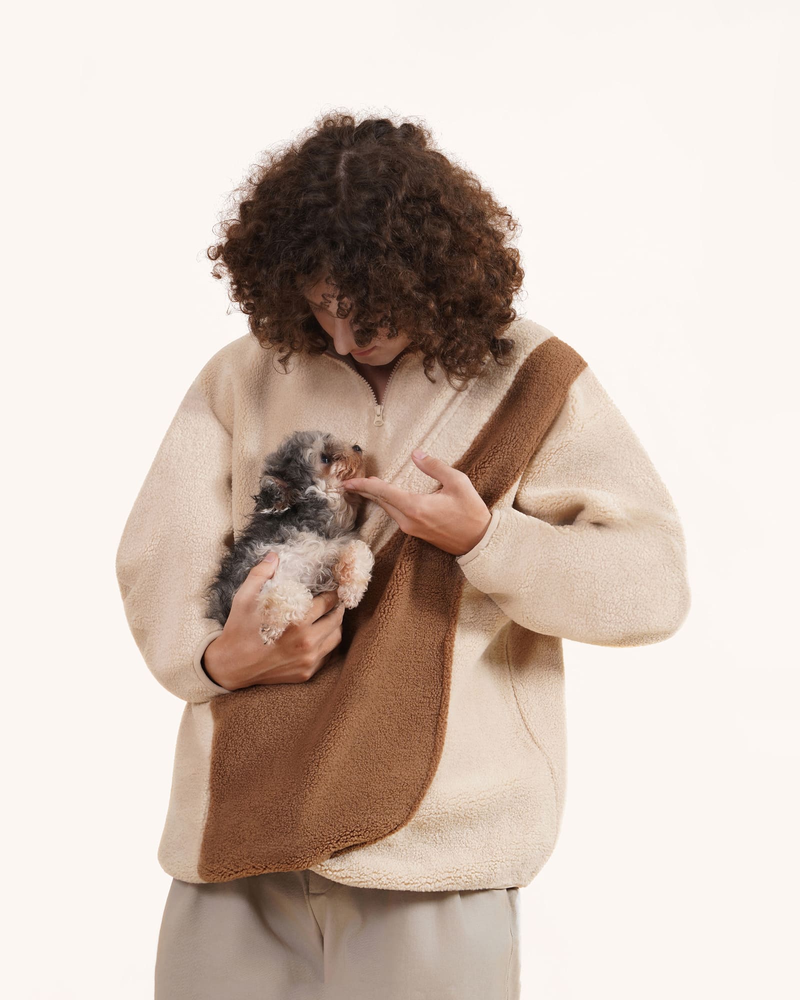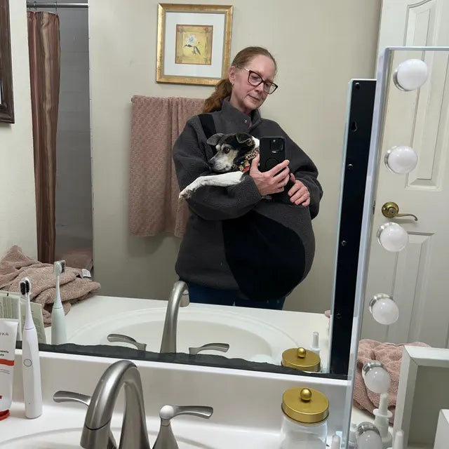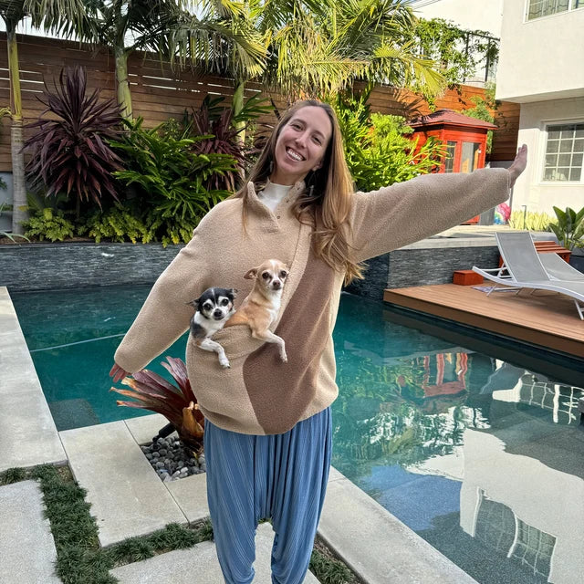 HANDS FREE - This fleece sweater keeps pets close and calm. Carry your pets hands free while taking walks, in the car, or just hanging out on the couch in the comfy pocket. This fleece sweater is also great for small dogs. It is the perfect pet pouch for women or men.